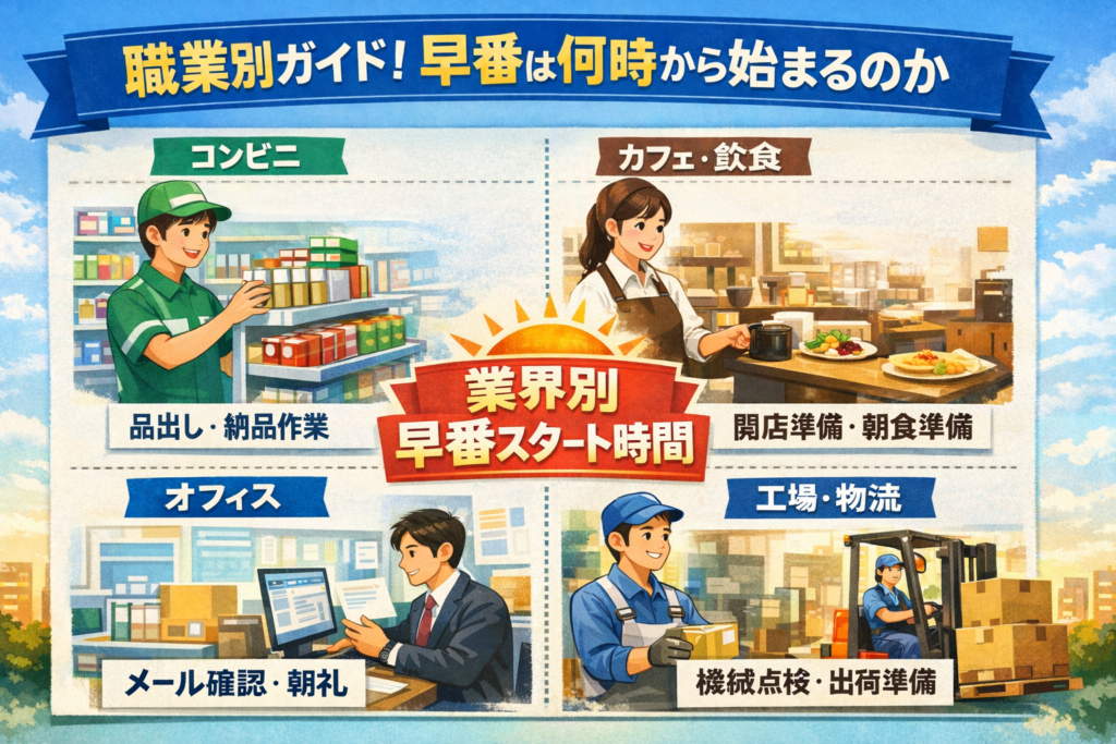「早番」と一口に言っても、その開始時間は業界によって驚くほど違います。